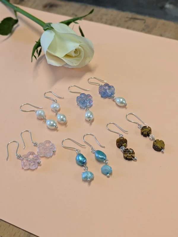 Välkommen att spendera en kreativ eftermiddag och skapa dina egna vackra örhängen, eller ett armband, i silver och pärlor! 🌸